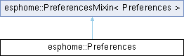 Public Member Functions inherited from esphome::PreferencesMixin< Preferences > | |